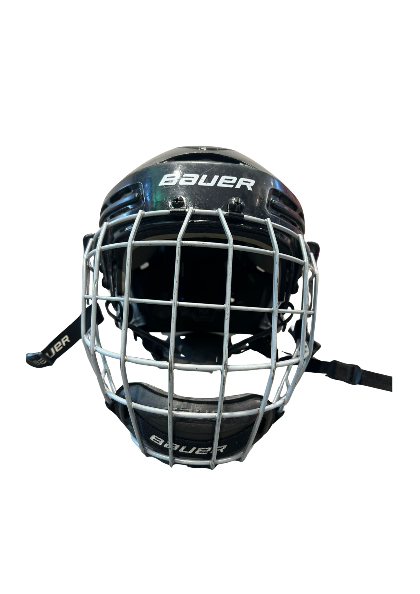 Bauer 5100 -jääkiekkokypärä koossa S. Kypärässä on ristikko ja se on muuten hyvässä kunnossa, tarjoten edelleen luotettavaa suojaa jäällä. Kypärä on käyttövalmis ja käyttöikää on jäljellä.