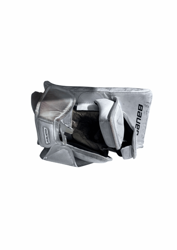 Bauerin GSX-kilpi juniorikoossa. Selkeitä käytön jälkiä ja kulumaa, mutta rakenteellisesti ehjä ja yhä käyttökelpoinen. Erinomainen valinta esimerkiksi pihapeleihin tai varakilveksi.
