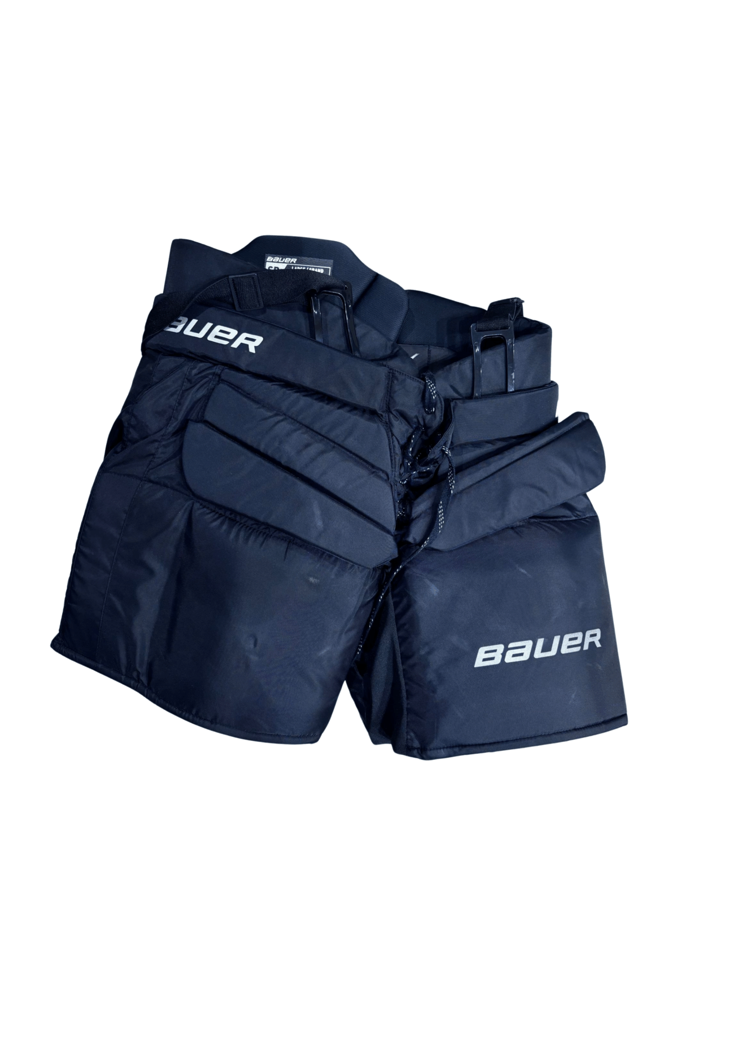 Bauer GSX -maalivahdin housut koossa SR L. Kevyt ja miellyttävä malli joka tarjoaa hyvän suojan ja liikkuvuuden peliin ja treeneihin. Istuvat hyvin ja antavat riittävästi tilaa torjuntatyöskentelyyn ilman ylimääräistä painoa.