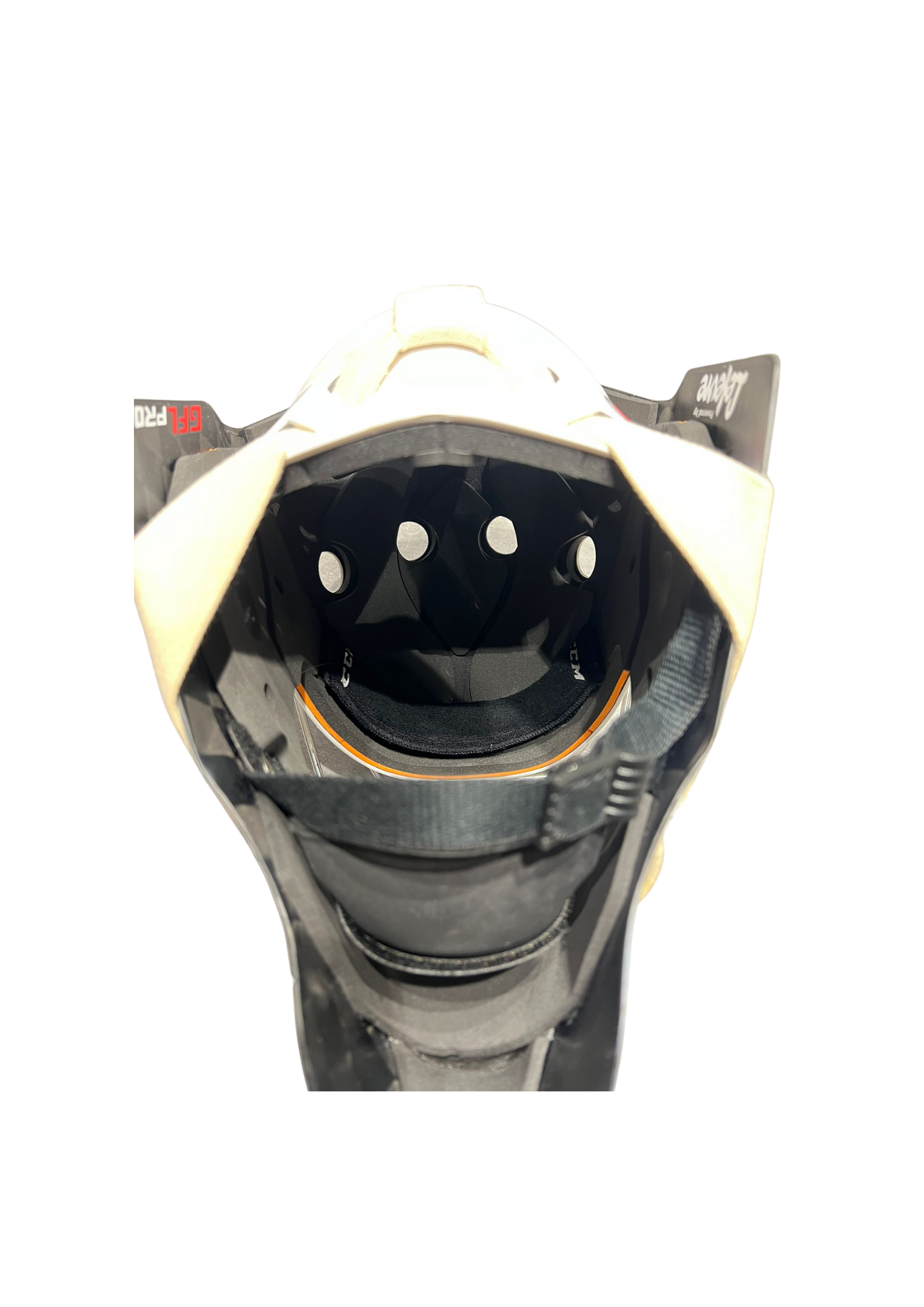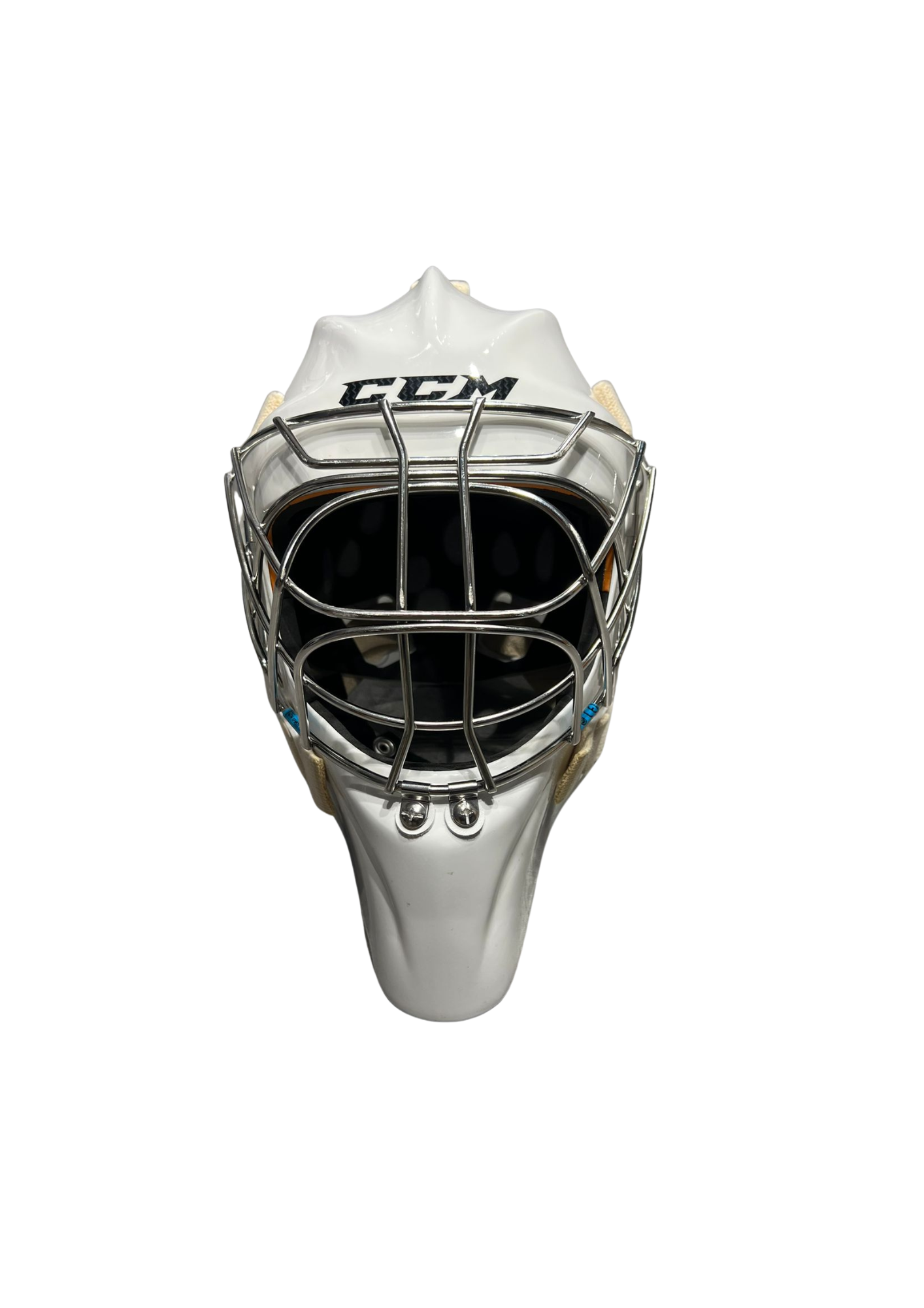 CCM GFL Pro -maalivahdin kypärä koossa SR M. Kyseessä on käyttämätön pro tason kypärä, joka on suunniteltu kovaan pelikäyttöön ja maksimaaliseen suojaavuuteen. Laadukas rakenne ja istuvuus vastaavat Liiga tason vaatimuksia ja kypärä tarjoaa erinomaisen suojan sekä varmuuden torjuntatyöskentelyyn.