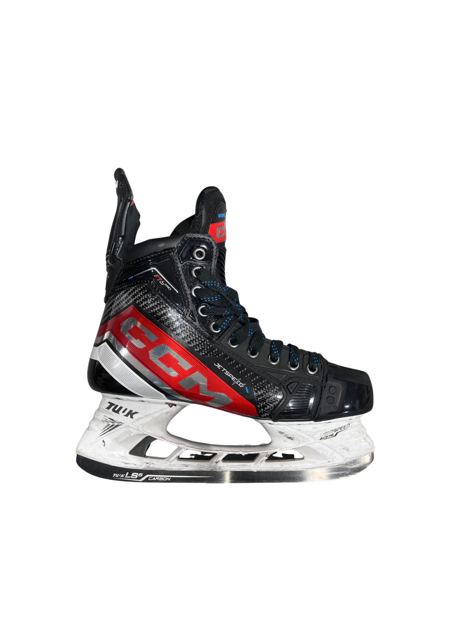 CCM Jetspeed FT6 PRO Tapered Fit -luistimet koossa SR 43. Malli kaudelta 2023–2024. Nämä kevyet ja tukevat luistimet tarjoavat erinomaisen yhdistelmän ketteryyttä ja suorituskykyä, ja Jetspeed-rakenne mahdollistaa hyvän voimansiirron jokaisella potkulla.