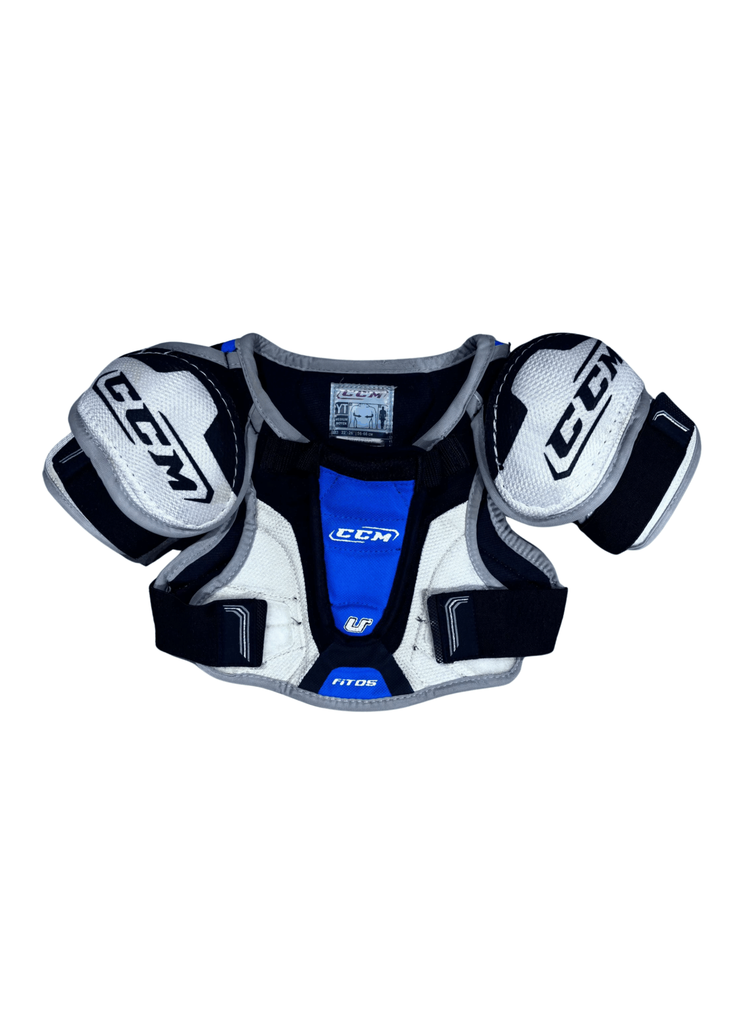 CCM U+ -hartiasuojat koossa YT M. Kevyet ja mukavat suojat, jotka tarjoavat hyvän liikkuvuuden ja riittävän suojauksen nuorelle pelaajalle.