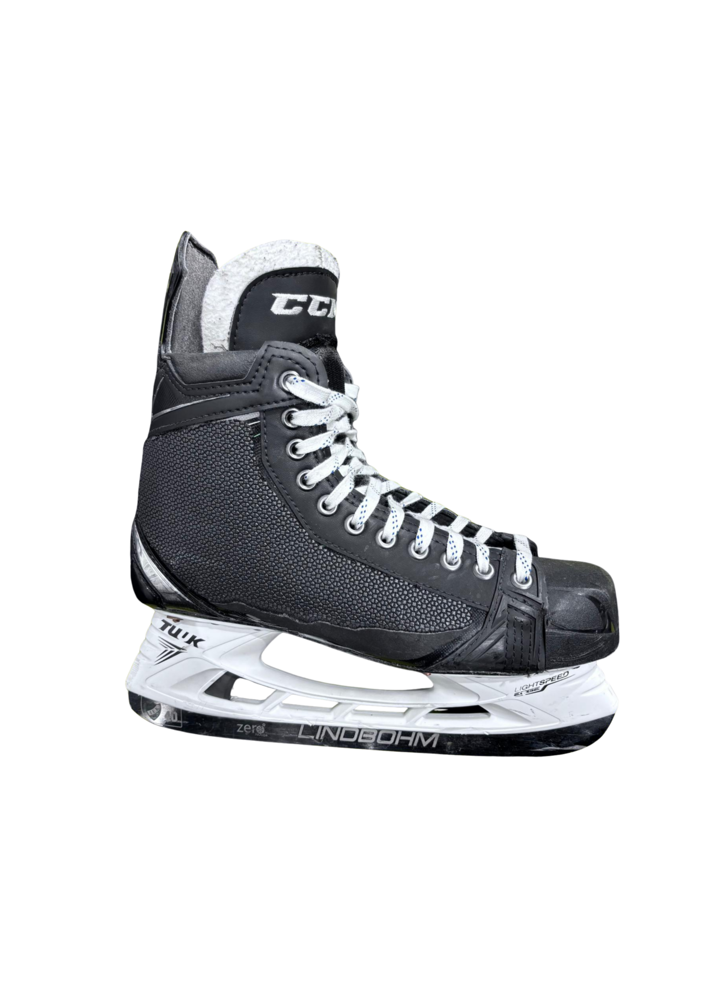 Petteri Lindbohmin käytössä olleet CCM Ribcor 100K Custom -luistimet koossa 10. Ribcor-sarja tunnetaan erinomaisesta ketteryydestä ja luonnollisesta luistelutuntumasta mikä sopii nopeaan ja reaktiiviseen pelaamiseen. Custom-rakenne tuo istuvuuteen yksilöllisiä ratkaisuja jotka vastaavat Liiga-tason vaatimuksia.