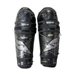 Bauer Supreme 3S JR -hartiasuojat koossa JR M. Suojat tarjoavat hyvän istuvuuden ja suojan junioreille harjoituksiin ja peleihin. Hyvässä kunnossa ja täysin käyttövalmiit, kaikki osat ehjät.