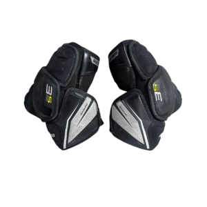 Bauerin Supreme S170 -mallin pelaajan kyynärsuojat nuorille pelaajille. Koko on Youth L. Suojat ovat hyvässä kunnossa, ja niissä on vain pientä kulumaa. Tarjoavat hyvän suojan ja istuvuuden junioreille kovaan peliin.
